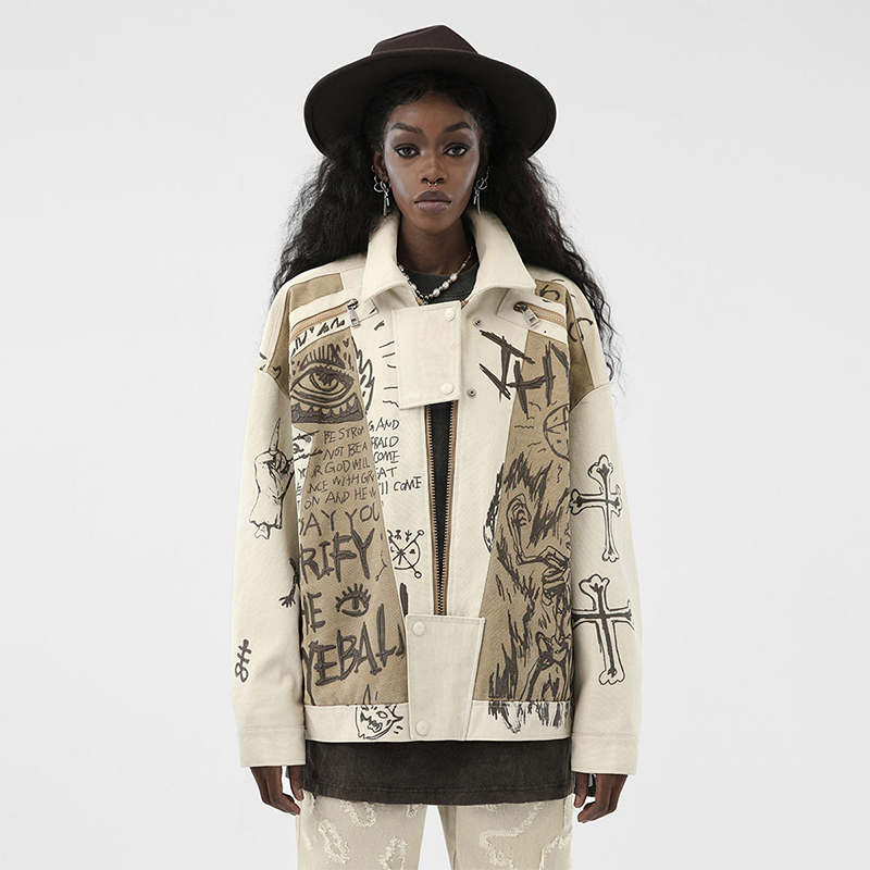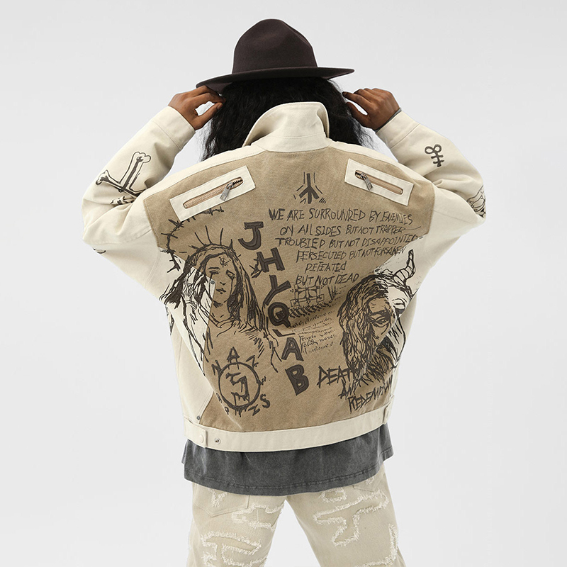 Heavy graffiti short jacket male loose American tide brand locomotive baseball American jacket