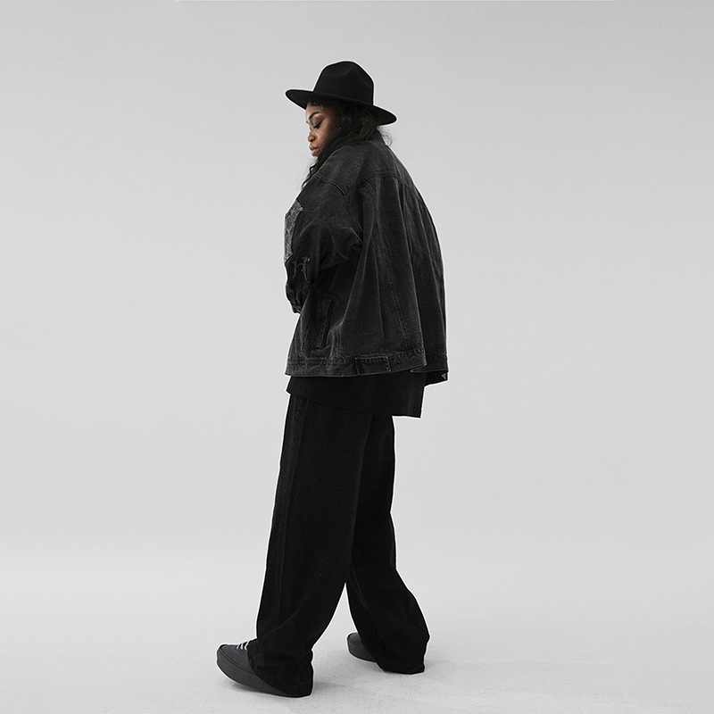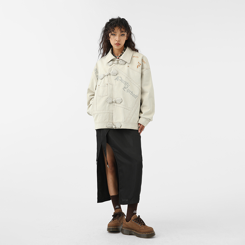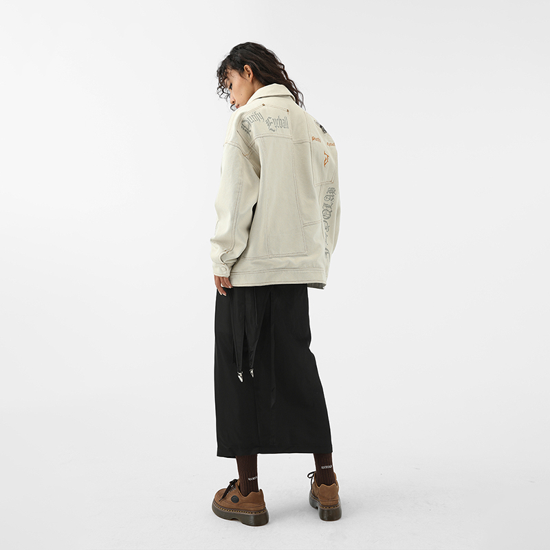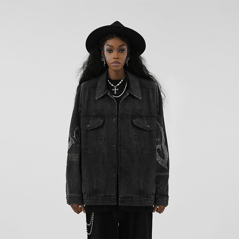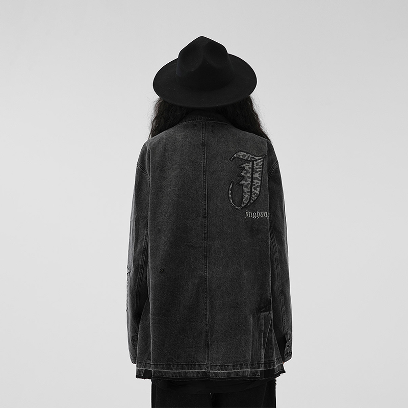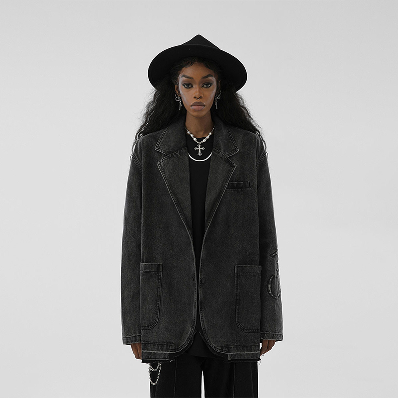 American style jacket men’s lapel loose retro embroidery denim suit jacket