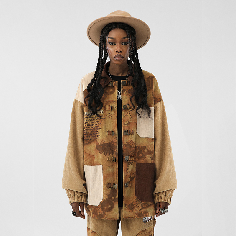 Trending printing light core outer set Men’s loose retro deduction casual jacket set