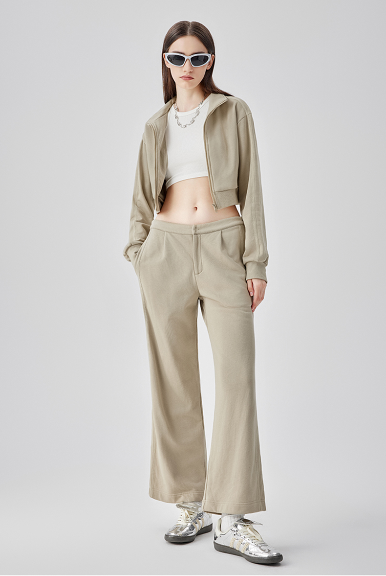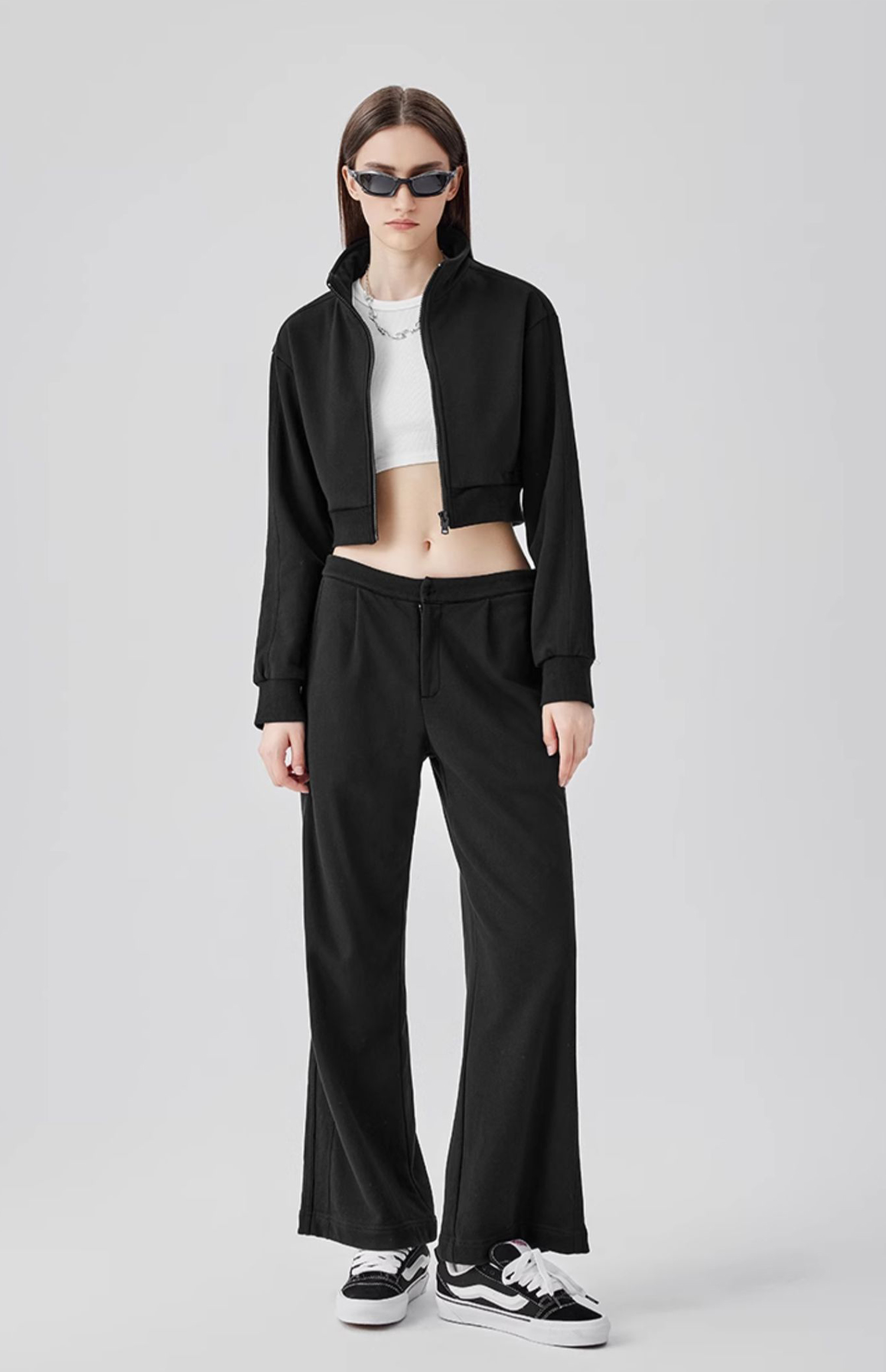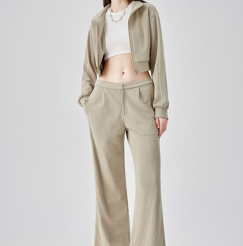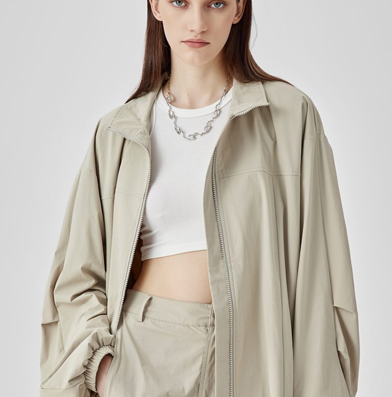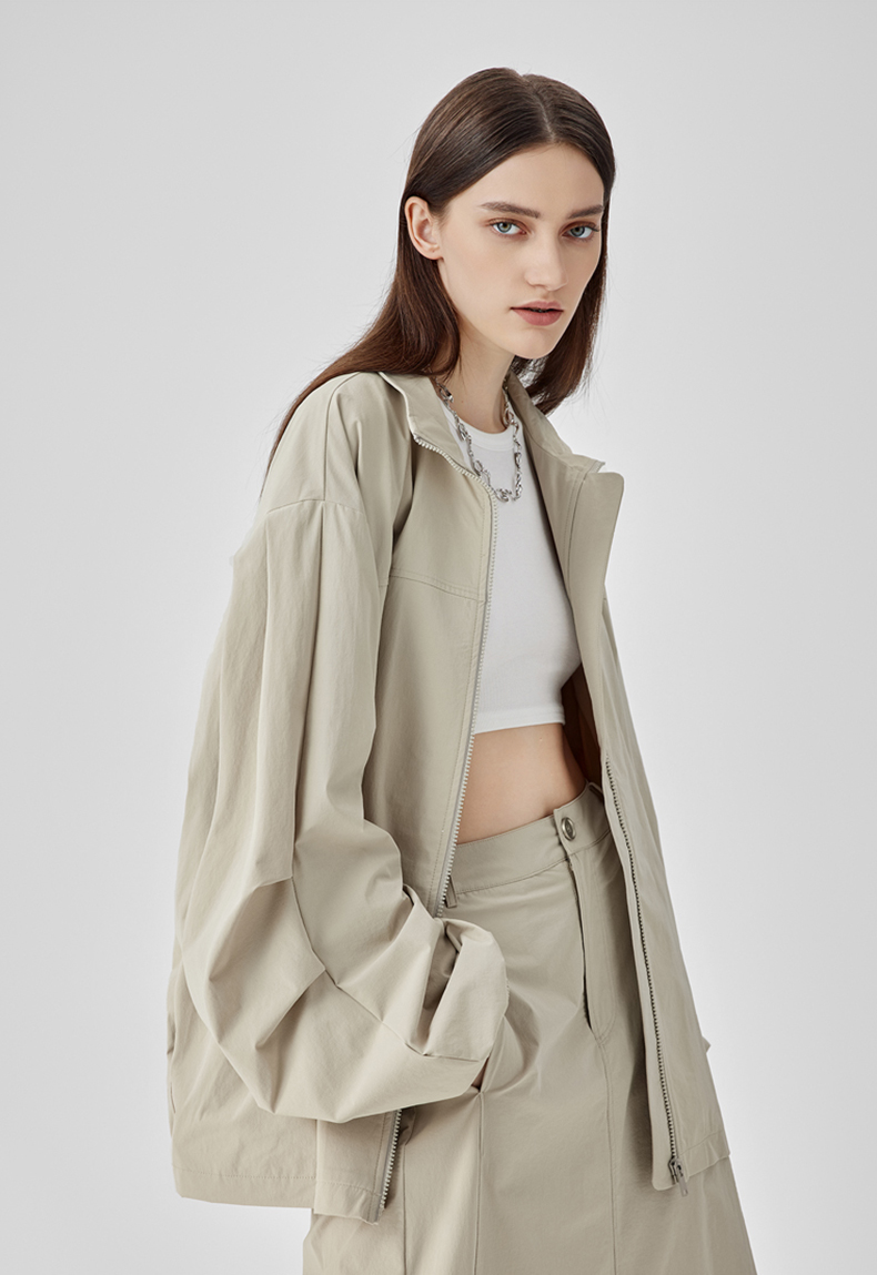Design sensor silhouette folds outer collar, spring and autumn anti -splashed long -sleeved cardigan jacket set