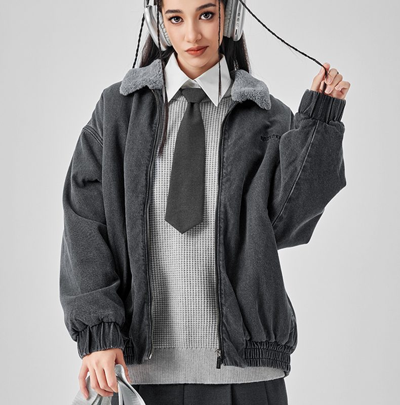 Add velvet denim winter jacket Men’s beautiful retro water washing to make old lamb cashmere lapel jackets