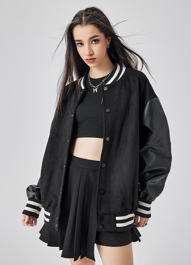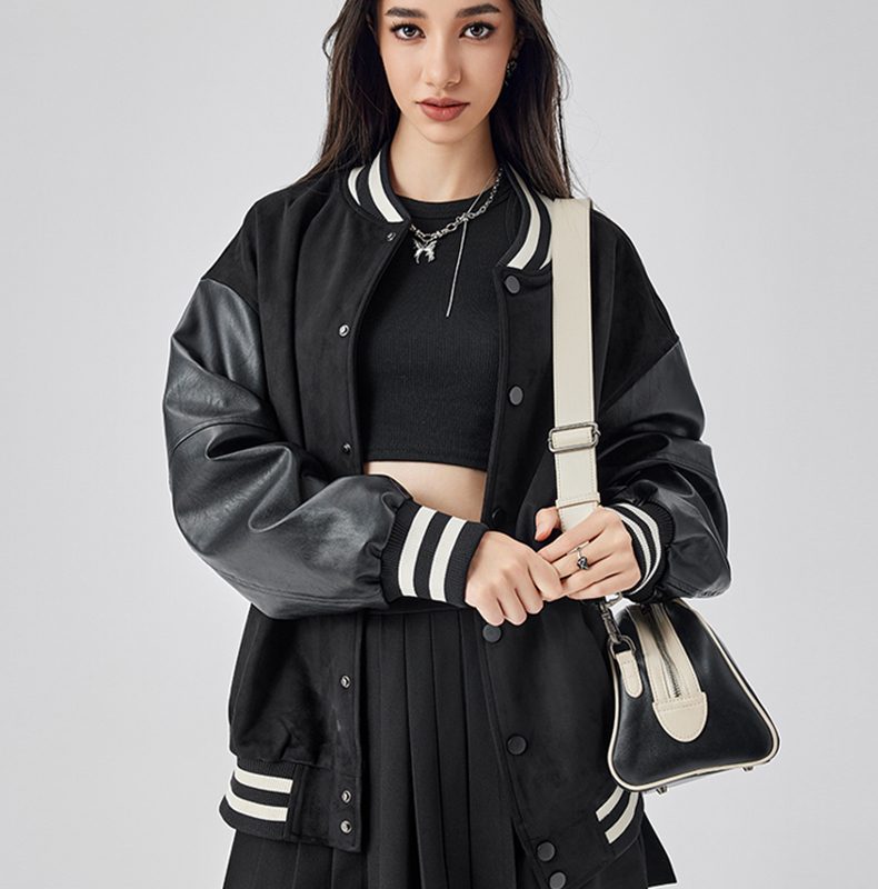 American style jacket men’s plate buckle lapel embroidery short baseball locomotive jacket