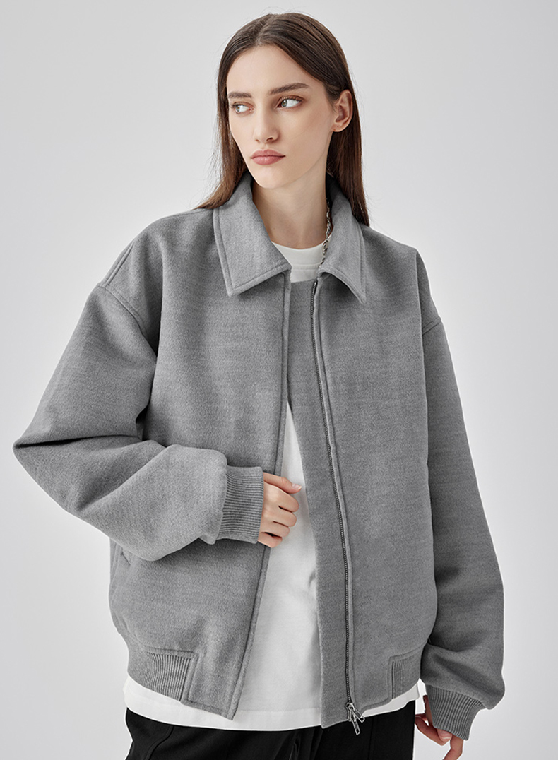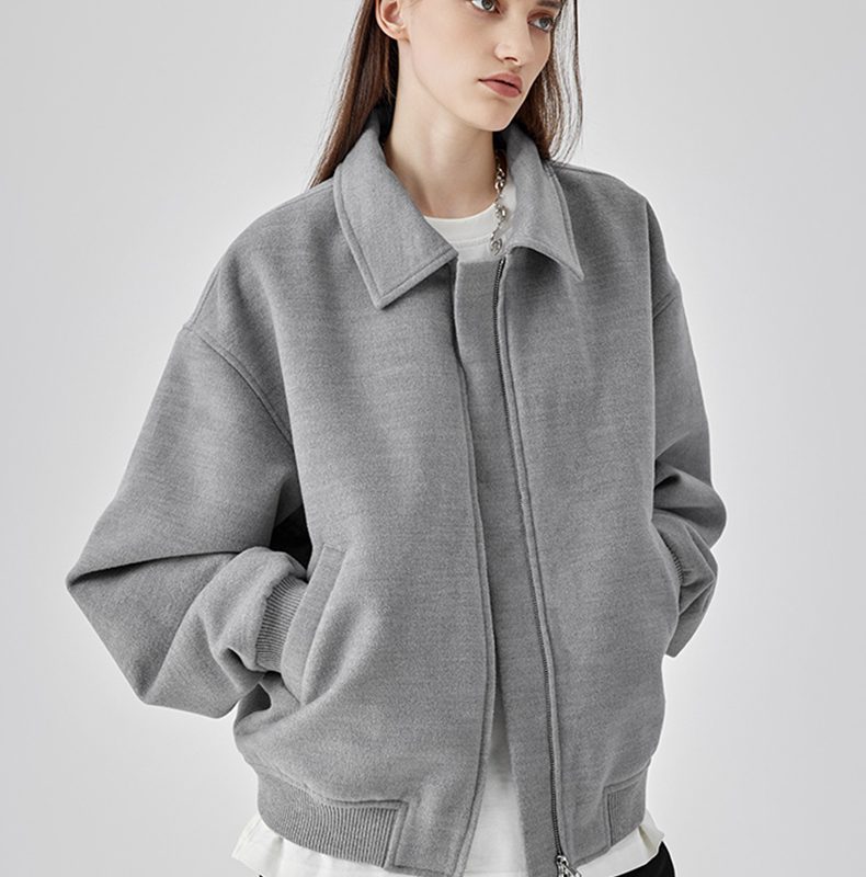 Simple and high -level sense imitation hair woolen coat men’s autumn leisure double zipper short baseball jacket jacket